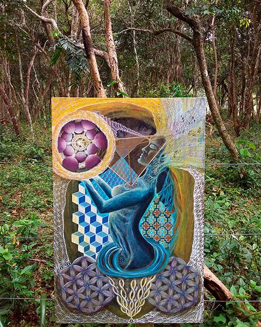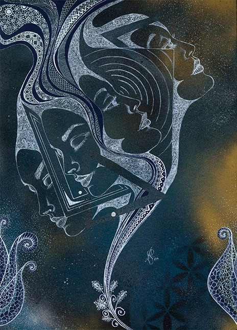 La conexión con el mundo espiritual se ve plasmada en la manera en que se crean obras nuevas. La creatividad es aquello que surge espontáneamente del subconsciente, que al mismo tiempo es el contacto con esa conciencia universal. En Dunniverse vemos el arte como la canalización de este subconsciente colectivo a través de la artista.